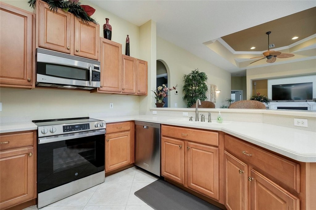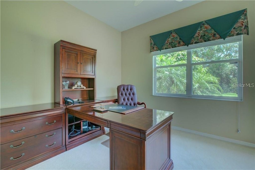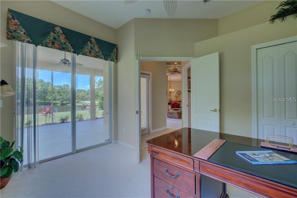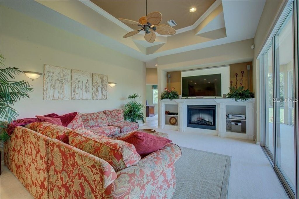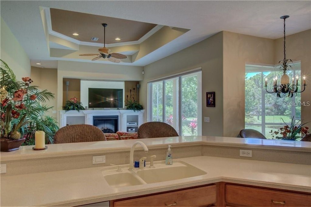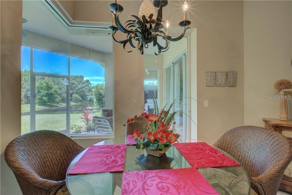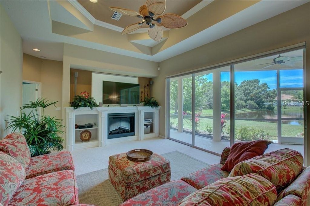 Under contract-accepting backup offers. Built by Rutenberg Homes, this residence offers high tray ceilings and a smart, open layout. The formal living and family rooms, along with the en-suite primary bedroom, open to the lanai. The dining room features custom built-ins, two guest bedrooms share a bath, and a private in-law suite/office includes its own bath and lanai access. The kitchen, with newer appliances, a breakfast bar, and an eat-in nook, connects to the family room with an electric fireplace. The lot backs to a wooded preserve with a pond on one side. A heated community pool is just a 3-minute walk away. Additional features include a drilled well for sprinklers, exterior taps, a three-car garage with EV charger, and new central heating/AC (March 2025). Walk to Pine View School for the Gifted, close to the Legacy Trail, Gulf beaches, Oscar Scherer State Park, and boating. Optional Turnkey. Seller will consider all offers.